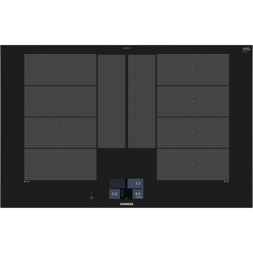 With flexInduction Plus, the flexible cooking zones automatically extend in two directions to add more depth or width for your extra-large cookware up to 30 cm in diameter. If one zone is not big enough for your cookware item, your hob takes control and activates more inductors for even heating. It’s also an excellent option for using teppanyakis or griddle plates up to 40 cm long.