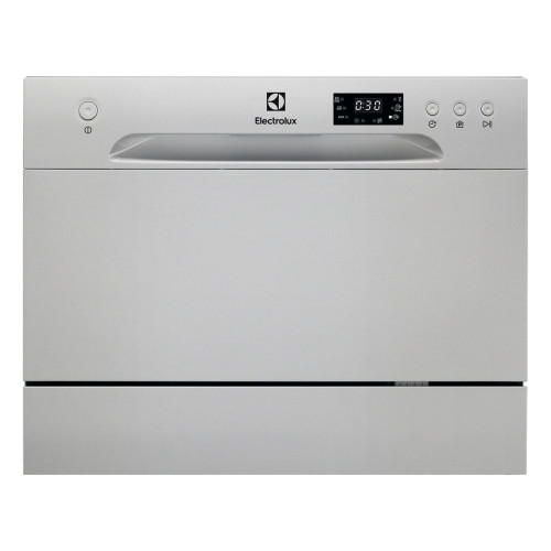 Electrolux ESF2400OS. Appliance placement: Freestanding, Product size: Compact, Door colour: Silver. Number of place settings: 6 place settings, Noise emission class: D, Noise level: 52 dB. Energy efficiency class: F, Water consumption per cycle: 6.5 L, Energy consumption per 100 cycles: 61 kWh. Width: 550 mm, Depth: 500 mm, Height: 440 mm. Package width: 605 mm, Package depth: 555 mm, Package height: 503 mm